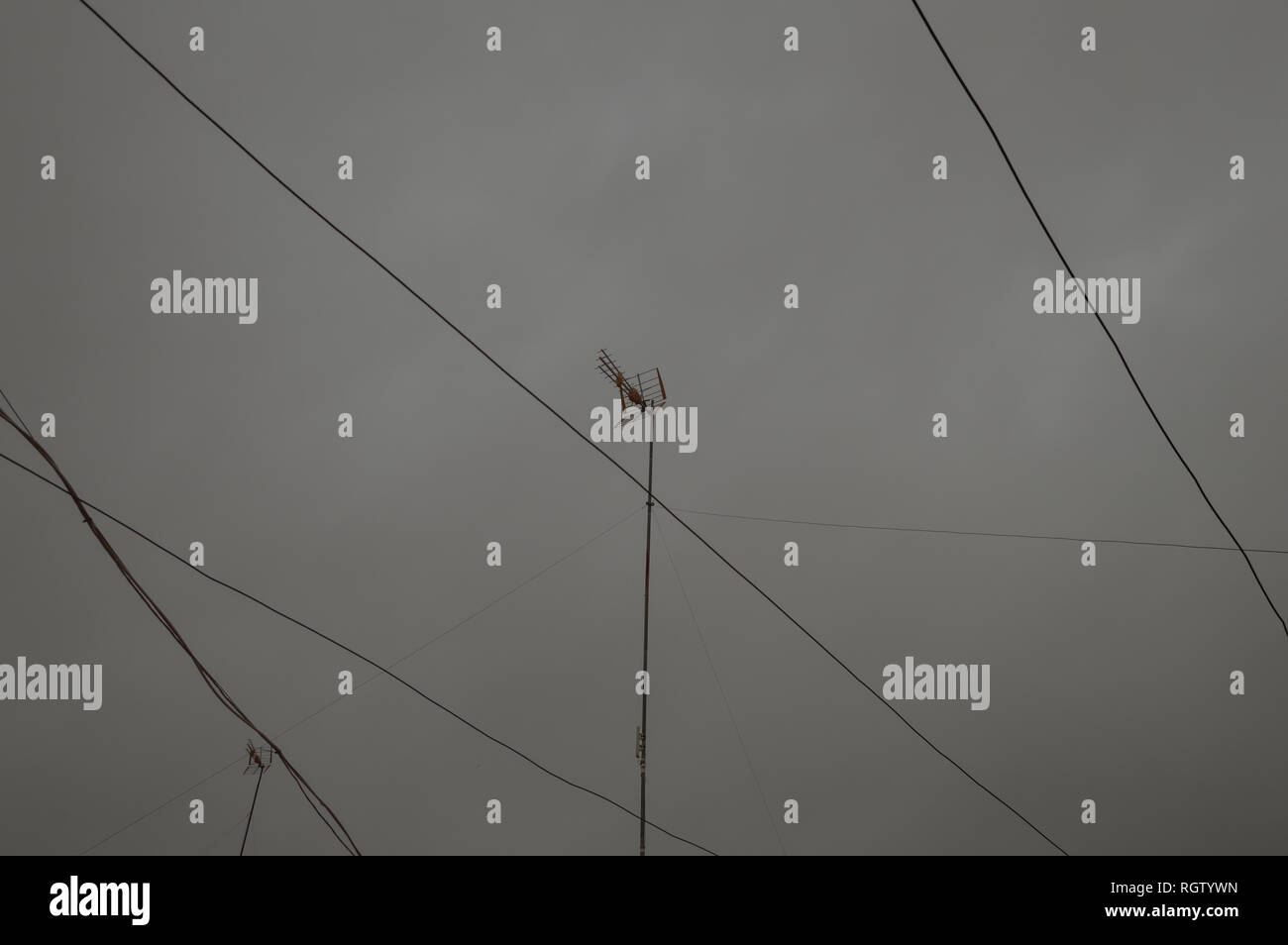 Dark Winter Day With Storm Causes Interference And The Tv Signal Fails Stormy And Cloudy Background With Television Antennas And Cables Stock Photo Alamy