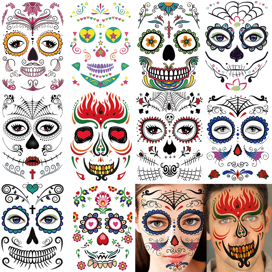 Hot Discount 2ffd Halloween Temporary Face Tattoos 1 Sheets Floral Day Of The Dead Sugar Skull Face Tattoo Kit Halloween Tattoos Cicig Co