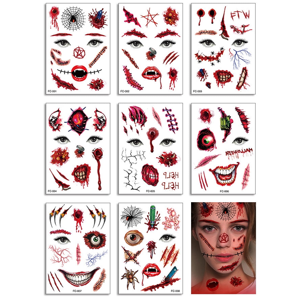 8 Sheets Halloween Tattoo Sticker Waterproof Scary Temporary Tattoo Face Sticker Walmart Canada